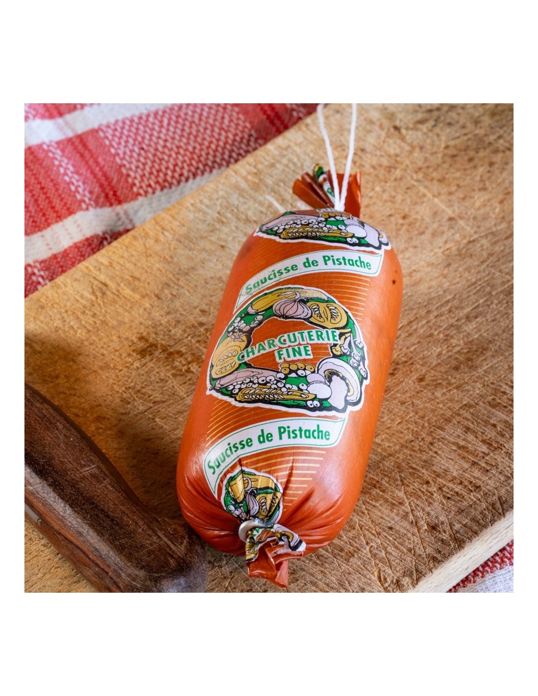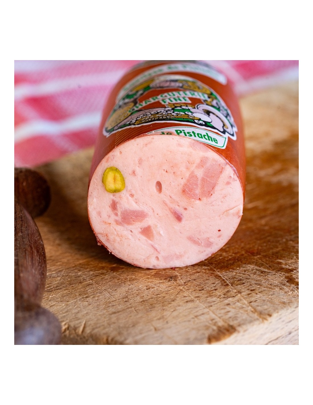 La saucisse à la pistache correspond à la même base que la saucisse de Lyon ou la saucisse de jambon, hormis l'ajout de pistaches entières et de cubes de jambon pour encore plus de saveurs.